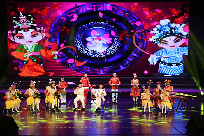 民乐小合奏《戏娃》则涵盖了铿锵有力的锣鼓、清脆高亢的京胡、柔美悠扬的笛子、典雅优美的古筝、悦耳动听的琵琶等乐器,整个乐曲旋律昂扬,热情洋溢,节奏抑扬顿挫。
