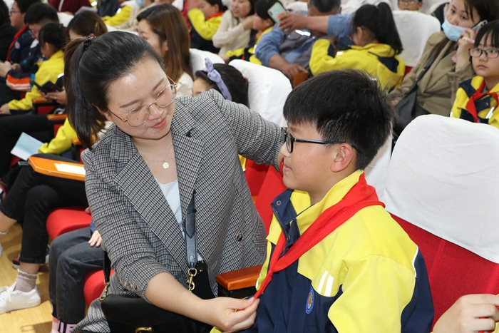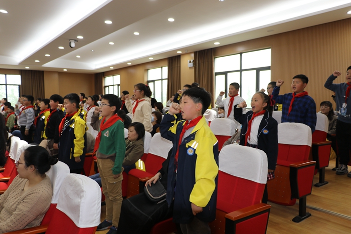 “我要做一个有良知的人,热爱祖国,尊敬师长;我要做一个有骨气的人,刻苦学习,追求卓越;我要做一个有教养的人,遵纪守法,完善人格;我要做一个有毅力的人,知难而进,永不放弃!我相信,我能行;我相信,我最棒!”孩子们在大队辅导员陈晨老师的带领下郑重宣誓。铮铮誓言,字字有声,昭示着孩子们长大后报效祖国的拳拳初心。