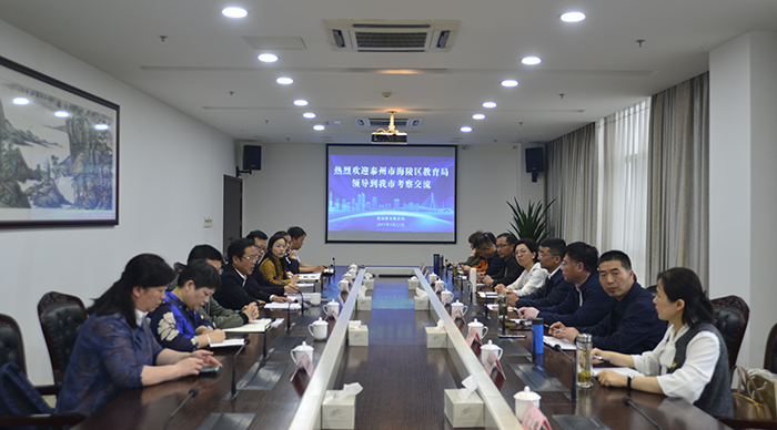 姜小军介绍了海陵的历史延革,经济概况,教育发展的现状和瓶颈。他还就教师编制,招生机制,生源保障等问题与张家港市教育局的领导做了深入交流。姜小军说,近年来,张家港教育以立德树人为根本任务,聚合优质资源、聚力开放创新、聚焦立德树人,率先建成全国首批义务教育优质均衡发展县市、率先建成江苏省教育现代化示范市,打造“人民群众认可、同类城市领先”的全国一流“现代化教育名市”。他希望双方多做交流学习的事,进一步推动两地教育领域全学段、全领域、全要素的交流合作,促进相连、相融、相通,深化交流合作,实现资源共享,共同推动双方教育事业改革发展提质增效。