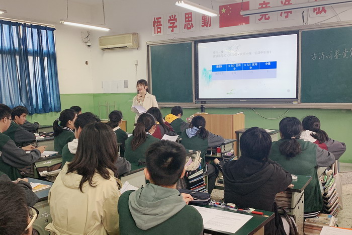 民兴中学胡楗老师执教了《考场作文指导》。他以学生作文为例,从审题、立意、用材三个层面入手,逐一剖析作文的问题所在,带领学生针对作文问题探讨修改方法,引导学生将考场问题作文升格为审题全面准确、立意新颖深刻、选材独特个性的考场优作;智堡实校徐小思老师执教了《中考诗词阅读指导》。她带领学生对近年中考诗词阅读理解题进行了“群文、群题阅读”,帮助学生梳理出“找意象、想画面、析情感、明手法”的解读诗词基本方法,继而引导学生剖析出景、情(理)、辞等中考诗词阅读理解的主要考点,最后让学生转换视角进行命题,进一步提高学生的审题和解题能力。