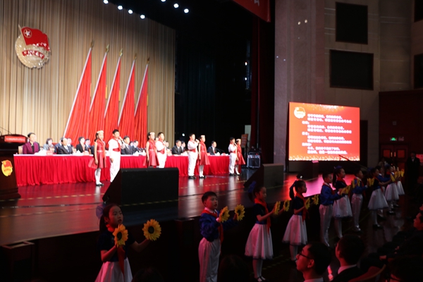 12月8日上午,共青团泰州市第五次代表大会在市大剧院隆重开幕。泰州市实验小学54名队员代表全市少先队员向大会献词。
