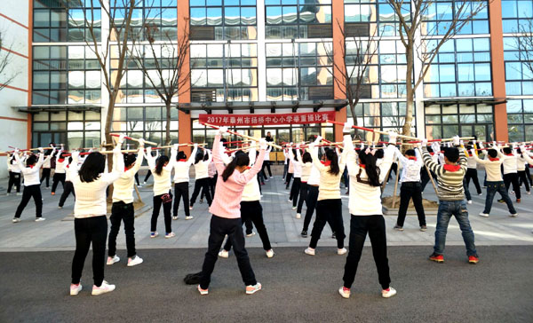 扬桥小学举行第二套自创举重操比赛