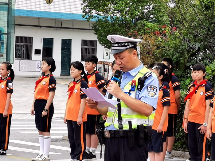 为进一步提高学生的交通安全意识、文明意识和自我保护能力,有效预防和减少道路交通事故的发生,近日,交警城中中队指导员吴新警官走进实验小学青年路校区,开展“交通安全开学第一课”进校园活动。