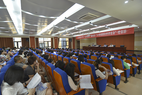 6月2日,江苏省2017年“名师送培”泰州市“小学英语自然拼读法”培训班在泰州市凤凰小学开班。上午,泰州市教育局副局长万琳、江苏省教科院机关党委副书记何锋、海陵区教育局局长凌华余、苏州市教师发展中心主任胡明出席开班仪式。