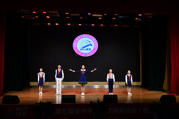 展演现场,少年宫海娃艺术团语言表演队的孩子们通过抑扬顿挫、声情并茂的朗诵,表达了他们对红色历史的缅怀、对革命英雄的信仰、对美好未来的憧憬,充分展现了新时代青少年学子积极向上的精神风貌,赢得了现场评委的高度赞誉。