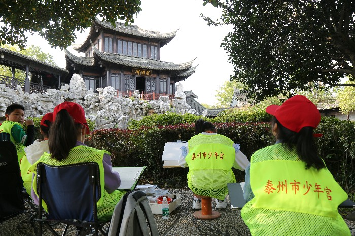 著名美学家朱光潜曾说过:“用一双慧眼看世界,整个世界的动态便成了他的诗,他的画。”在秋季树叶翩翩起舞的日子里,少年宫青少年书画院泰州分院的100名师生走进高港区口岸雕花楼,开展 “江左第一楼 笔墨描家乡”户外写生活动。