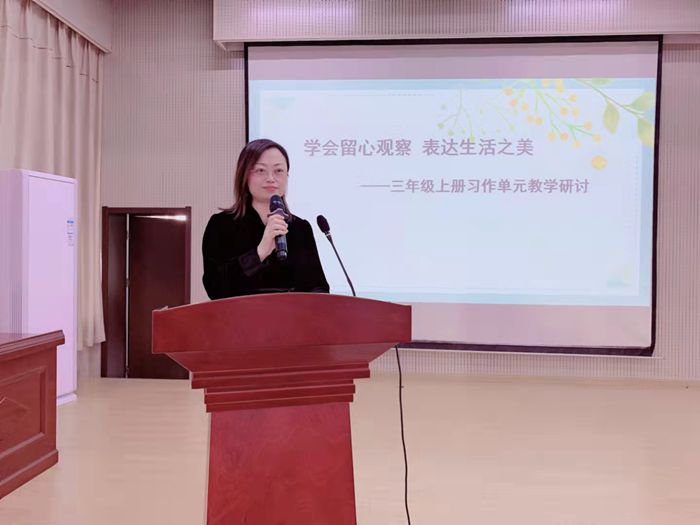 近日,区三年级习作单元教学研讨活动在大浦小学举行。区教师发展中心小学语文研训员王文静主持活动。区小学语文教师代表、大浦小学全体语文教师等100余人参加活动。