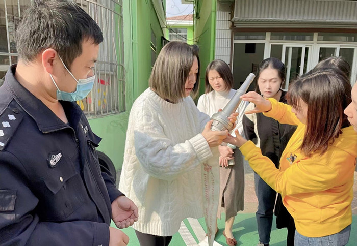 为提高教职工消防安全意识,普及消防安全知识,进一步强化校园消防安全工作,近日,儿教中心安居分园邀请社区民警周清来园,开展防技能实操培训活动。