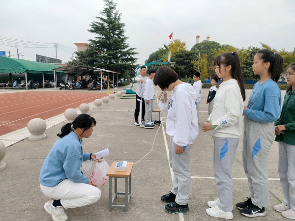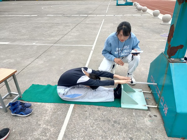在观摩展示环节,民兴中学的吉琴、叶陈丁昊两位老师,共同向与会老师展示了身高、体重、肺活量、坐位体前屈、仰卧起坐、跳绳、50米、50米X8往返跑等测试项目。测试工作严格按照《国家学生体质健康标准》进行,整个测试过程规范有序,学生积极参与,保障了测试工作的高效性和准确性。