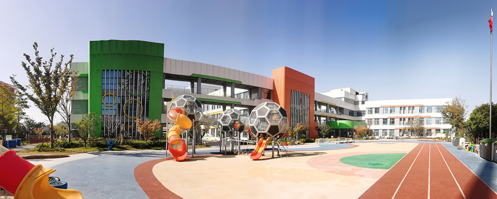 幼儿园按省优质园的标准建设,占地约1.3万平方米,建筑面积约1.24万平方米,幼儿户外活动面积约0.35万平方米,绿化面积约0.26万平方米。幼儿园建筑以白色调为主,搭配绿色、黄色、橘黄色,清新亮丽,充满活力。园区春有花、夏有果、秋有色、冬有景。户外玩具数量充足,品种多样,充分满足幼儿全面发展的需要。