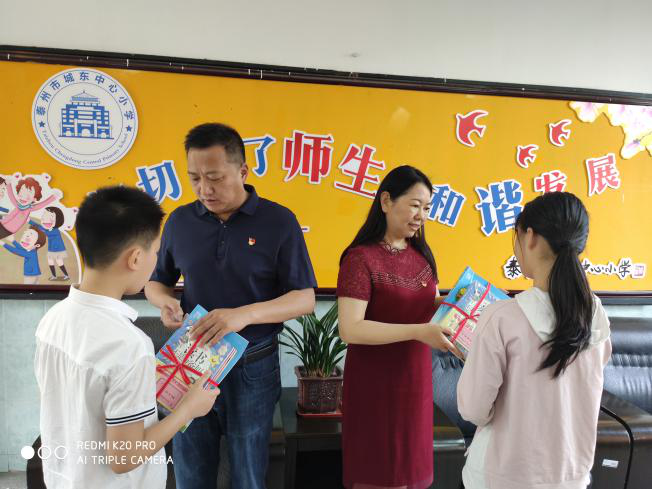 5月28日,“六一”儿童节来临前夕,城东小学本部北校区的两位留守儿童收到了来自“教师妈妈”——党总支书记、校长郑晓彤、本部执行校长姜建宇、班主任葛毅飞和张艳的节日的礼物和祝福。针对留守儿童的生活学习近况,“教师妈妈”们有针对性地挑选了适合孩子的课外阅读书籍和教辅用书,孩子们既激动又开心。