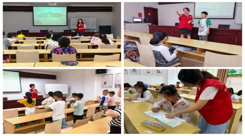 公益班的学习课程精彩纷呈,上午以学习新知识为主,下午则是针对学生的暑假作业老师们认真耐心地进行辅导和讲解。同时公益班也得到了多家单位的支持,泰州市第四人民医院团委为孩子们送来一节医护知识讲座,手把手教孩子们如何科学进行家庭急救,怎样进行日常消毒杀菌。